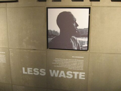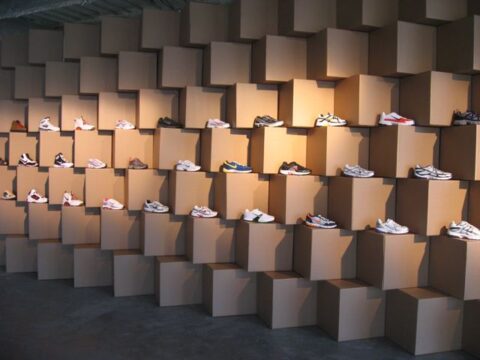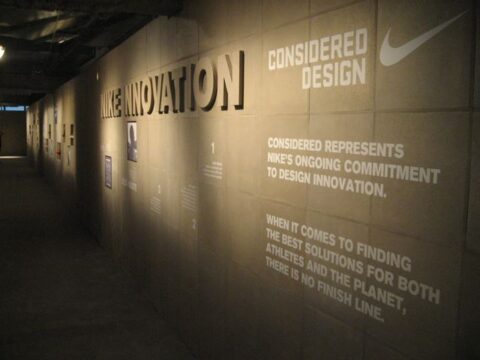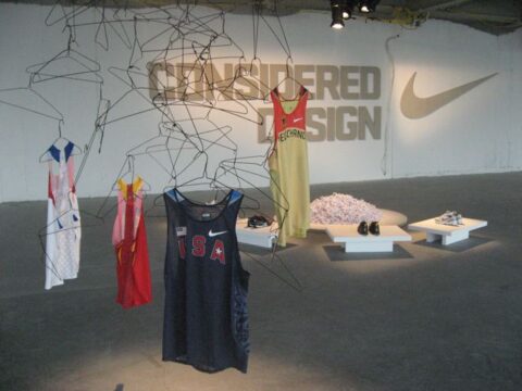 True to its commitment, Nikes event designers/producers at ceft and company New York, used local and 100% recycled building products where possible. They created product display modules that were constructed out of recycle paper pulp, made from post-consumer paper, including curbside recycled newspapers, and reused cardboard containers along with recyclable cloth hangers used at dry cleaners across the country. They even arranged for an organic breakfast to be served to the guests with of course, ceramic reusable coffee mugs, along with optional paper cups that were made from biodegradable matter derived from corn.