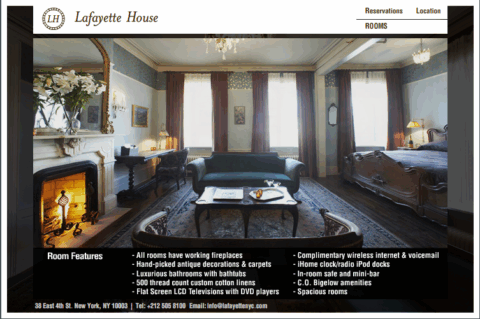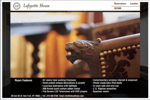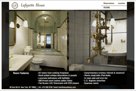 finally an old world feel of a charming inn in the city that is rather sick of modern (i mean cheap) pads. eric goode the man behind clubs like the old b-bar, and his partner sean macpherson the creator of maritime and the disneyland of a hotel called “the bowery hotel” have opened a 15-room inn by the name of lafayette house. the hotel/inn is charming but unfortunately lacking the extra details one would want for this price. expect little service, i.e. forget room service, concierge, and the like, after all its an inn not a hotel, but the basics are there; complimentary internet, plush towels, 500 count linens, large rooms, and ofcourse what every new york pad needs, a fireplace in every room. located in NoHo, between lafayette and bowery on 38 east 4th street, the rooms boost no great views but they contain a nice mix of old (including nicely done bathrooms, lovely antiques and even stationery printed to look aged around the edges! that’s a bit lame ok!) as well as new amenities (flatscreen, iPod-ready clock radio and condoms — 3 for $15). the five-story row-house has no elevator (not even a super dwarf sized one like those in paris), but a porter will be available to carry luggage if you happen to arrive during his work hours 8-8. rates for a standard room start at $375 a night which is rather steep given the lack of service but a nice deviation from the usual balazs’ plastic shoe box. a classic new york find: partially perfect / slightly over priced. by dd