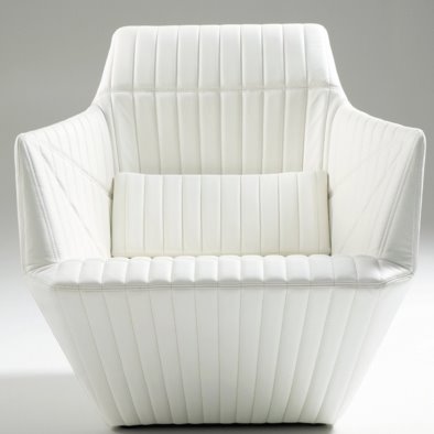 designed by the great french duo ronan & erwan bouroullec the armchairs were first introduced to me at the ICFF show by a friend/architect when they where launched. i loved them immediately for their comfort and pure aesthetic, but the +5K price tag kept me thinking. eventually, i acquired two facett chairs and one footrest (my guests are usually foot-less) and they have become a centerpiece in my home ever since. pros: love the origami inspired pure shape, the lovely white leather, detailed sticking, and hand work. cons: easy to tilt (when drunk, or reaching for a glass), a bit of a surprising choice on the velcro enclosure on the back. grey felt version highly recommended if you can ban children below 21 from entry. by dd