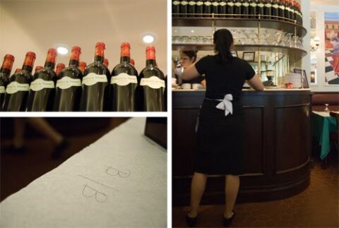 while in paris long lines are guaranteed (along with classic bad service), i am not sure you will see the same thing happening in the newly opened new york branch. certainly if the restaurant was situated in soho or the lame and crowded meatpacking district it might garner that type of reaction, but in midtown? located on a rather non-descript block amongst hotels and office buildings? and what a superbly perfect location that is indeed. lets hope it doesn’t get too much attention. now we can go and avoid the whole crowd. just know there is no choice. you just order how you want your meat done: “blue, rare, medium or well”. vegetarians are forever forbidden. don’t forget the profiteroles for desert. yuuuuuum! by dd