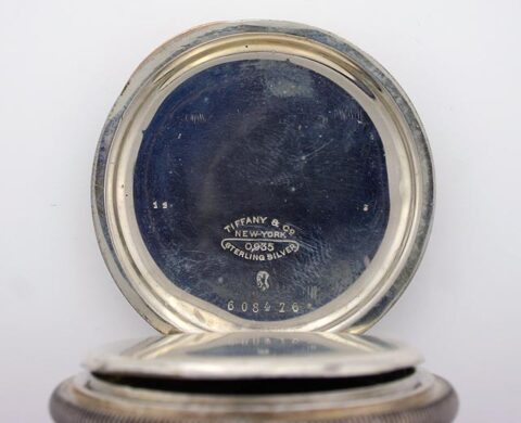 case measures 49mm in sterling silver signed tiffany & Co. on cuvette and inside back cover.