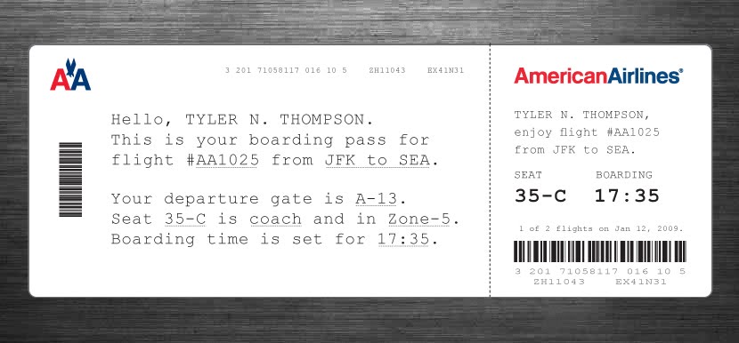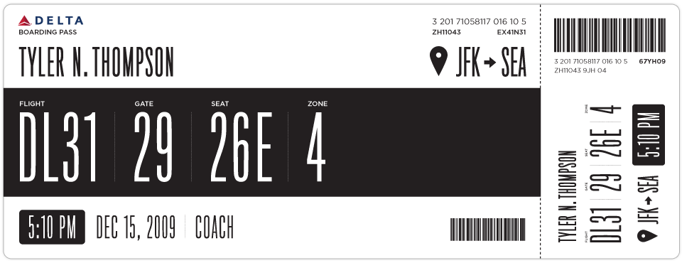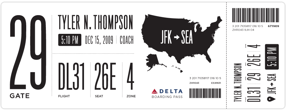 very interesting page from designer tyler thompson that “rubbed his eyes” on his delta ticket to get the basic infos related to his flight. mister tyler decided to give a try at redesigning the tickets and opened the exercice to other designer that also came with resolving designs. worth “checking” as i’m sure everybody with common sense have been bother by those pieces of non-design. here by pp