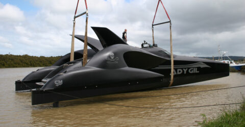 1. the hull is described as a wave-piercing trimaran. it is made out of carbon fiber with a foam core, with kevlar armor added to defend against ice. it is capable of submarining up to 7m (23ft) underwater.