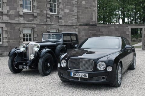 the vintage beauty next to the muslanne is the original 8-liter that was first shown at the 1930 london motor show. a total of 100 cars were built in 1930 and 1931. it was capable of reaching more than 100 mph, which was surpassing every other manufacturer of the day.