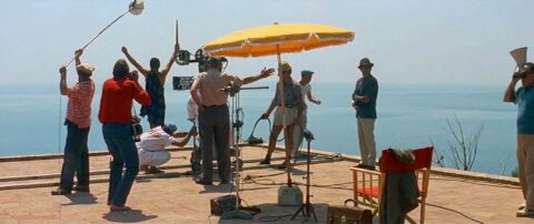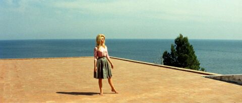 but while antonioni’s films adhered to a form of neo-classical modernism godard’s work didn’t follow those rules. antonioni’s films were austere, detached, critical, ironic, and moralizing, and godard managed to touch on all of these – sometimes lightly (a married woman) and sometimes bluntly (weekend) – but he also brought with him his own ‘excess baggage.’ his work was full of unruly paradoxes and clashing contradictions that were carefully layered and juxtaposed. le mepris is emotionally extravagant but with a cool, sardonic edge; there is an uneasy tension between symbols and documentary realism, between romantic sincerity and hardheaded irony, between classical quotations and topical jokes; between heartfelt displays and mocking attacks. while le mepris evoked antonioni – as une femme est une femme evoked vincente minelli – godard here was on his own.
